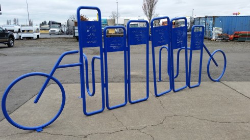 The book-themed rack was introduced as part of recent improvements to the library. When two standard bike racks had to be removed to accommodate a driveway redesign, library staff elected to replace them with a unique option that celebrates Fond du Lac writers from across the years and from a variety of genres.